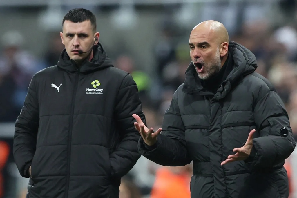 比赛之余,瓜迪奥拉的情绪成为焦点。他因不满中场对杰雷米·多库的犯规未被判罚,在替补席上怒不可遏,试图脱下冬衣表达愤怒,还与第四官员路易斯·史密斯对峙,双拳紧握、咬牙切齿。主裁将其出示黄牌——这是他本赛季第六张黄牌,将被禁赛两场,届时将缺席对西汉姆的英超以及随后的足总杯四分之一对阵(谁入围则对谁禁赛)。不过他不会错过3月22日对阿森纳的联赛杯决赛。