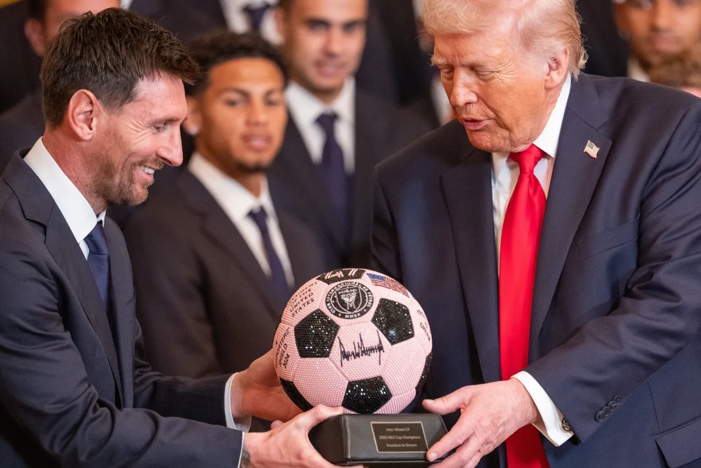 在华盛顿,梅西在白宫为唐纳德·特朗普鼓掌的画面引发争议。他在国际迈阿密队随队出访首都参加庆祝球队首个MLS杯冠军的仪式时,与特朗普一同上台。特朗普在台上谈及对伊朗的军事实行动作并称赞“有史以来最强的军队,做得很好”,梅西当场微笑并鼓掌,同时获得队内连续第二年MVP奖。 梅西传记作者塞巴斯蒂安·费斯特(Sebastián Fest…